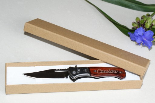 Oferuje elegancki nóż sprężynowy z Twoim grawerem w opakowaniu prezentowym,