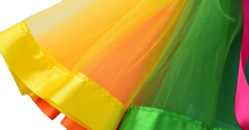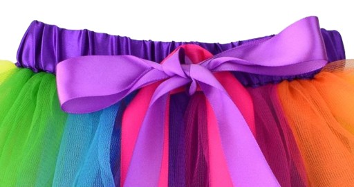 Spódniczka składa się z tiulowych pasów w różnych kolorach