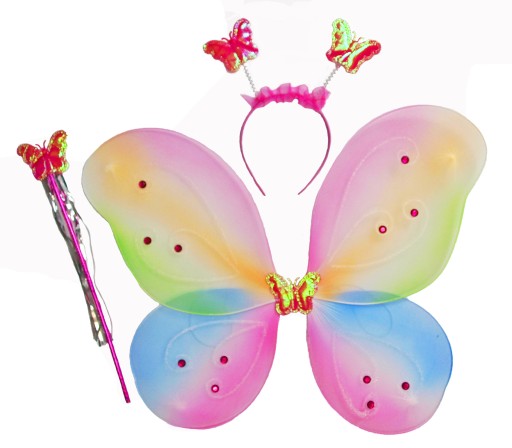 Szerokość skrzydeł ok 40 cm , długość ok 40cm - mocowane na gumki