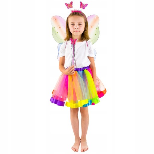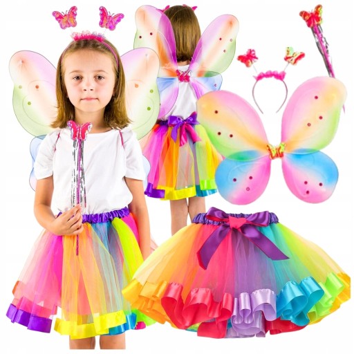 4 częściowy kostium - spódniczka tiulowa ( bez podszewki - do legginsów lub kryjących rajstop ) + opaska + różdżka + skrzydełka