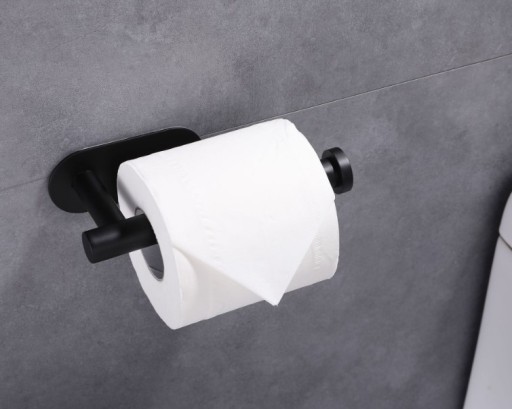 Samoprzylepny uchwyt na papier toaletowy stanowi szczególnie praktyczne i wygodne w użyciu rozwiązanie. Podstawową zaletą oferowanego modelu jest to, iż nie zajmuje wiele miejsca i zapewnia łatwy dostęp do papieru. Dzięki zastosowaniu wysokiej jakości taśmy samoprzylepnej montaż jest szybki i prosty, a konstrukcja wieszaka sprawia, że nakładanie na niego rolki papieru jest wyjątkowo łatwe i wygodne. Czarny, matowy kolor oraz prosty design przypadną do gustu wielbicielom minimalizmu. Świetnie sprawdzi się w aranżacji wygodnej i funkcjonalnej łazienki.