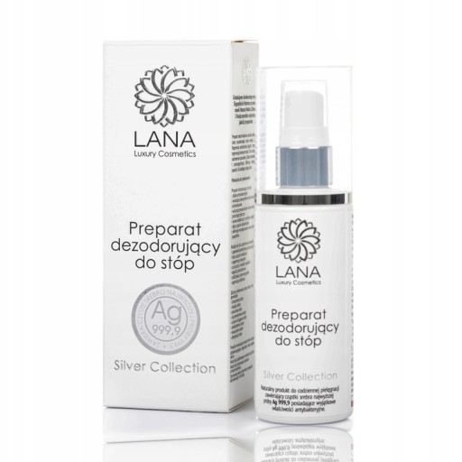Preparat do stóp LANA Luxury Cosmetics na bazie srebra Ag 999,99 o stężeniu 50ppm, to naturalny kosmetyk dedykowany do skóry stóp o działaniu: