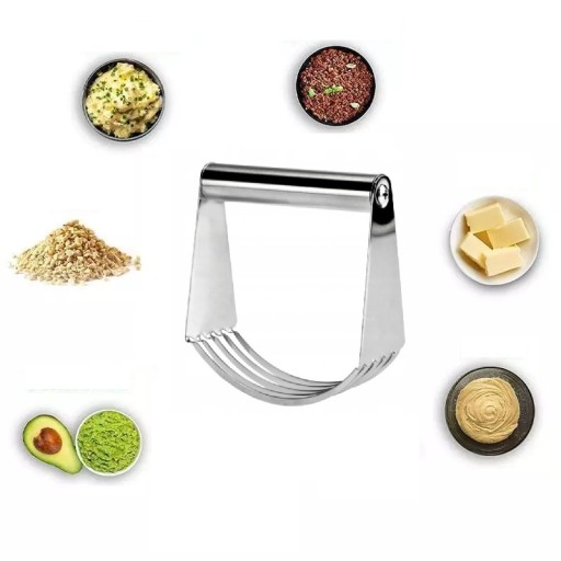 Solidny i funkcjonalny rozdrabniacz do składników ciast. Wykonany z nierdzewnej stali stopowej. Wyposażony w 5 ostrzy, które szybko wymieszają kawałki masła z mąką i innymi składnikami.