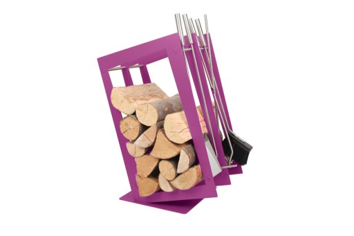 zestaw prostokątny fioletowy: akcesoria kominkowe + kosz na drewno