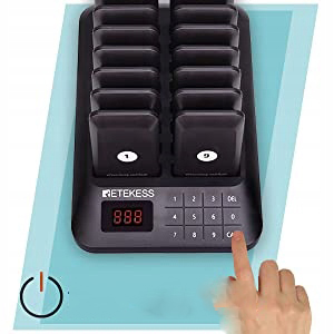 Retekess TD157 System Pagera Restauracji, Pager, 16 Pagerów, Czarny, 500M, Czas Połączenia 1-99 s, Klawiatura Dotykowa, 998 kanałów, Restaurant Pager Gastronomiczny Dla Bar Szpital