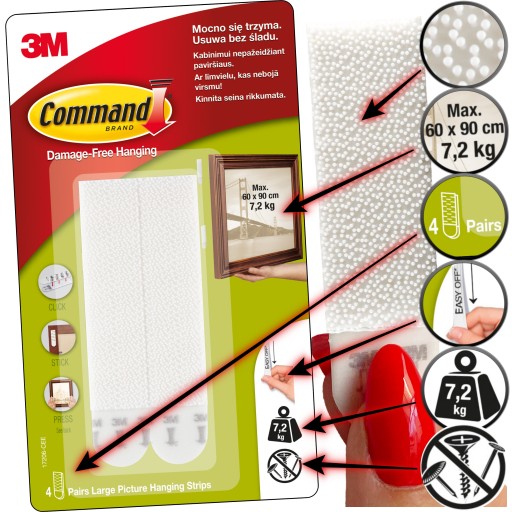 COMMAND Rzepy Samoprzylepne do Obrazow Duże 8 szt