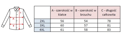 długość 81cm, szerokość pod pachami 60cm, dł. rękawa od szyi 87cm, dł. rękawa od pachy 53m, szerokość około pasa 57cm, szerokość na dole 61cm