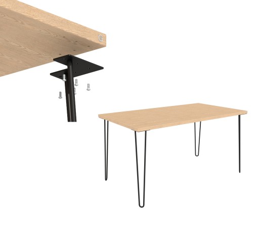 Noga meblowa stalowa typu Hairpin - przeznaczona jest do montażu w nowoczesnych meblach. W zależności od wysokości może być używana w komodach, szafkach nocnych, szafach, stolikach kawowych lub stołach. Noga posiada przyspawaną blachę montażową, którą przykręca się ją do spodu blatu na wkręty do drewna lub wkręty metryczne wraz z mufą wkręcaną, którą montuje się w blacie. Noga wykonana jest z solidnego pręta Ø12 mm oraz posiada skos około 10%, dodatkowo podkreśla nowoczesność nogi i całego mebla.