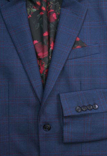 Garnitur Elegancki SLIM, Granatowy w Kratkę Zapinany na Dwa Guziki, Spodnie w Kant -VICTORIO