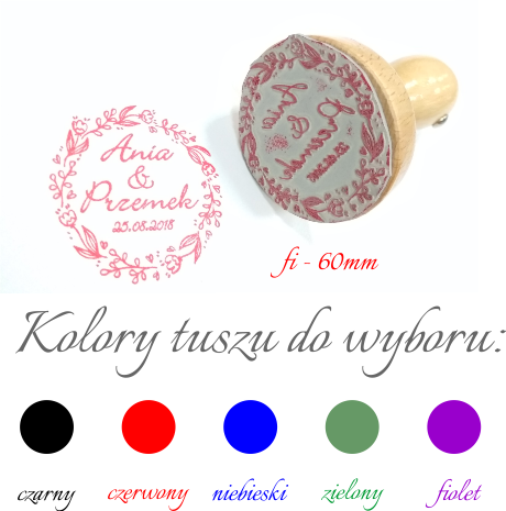 Cena uwzględnia drewniany uchwyt z wyciętą gumką oraz poduszkę w wybranym kolorze tuszu.