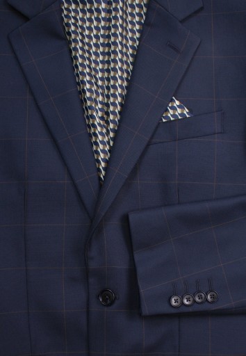 Garnitur, Granatowo-Brązowy w Kratkę Zapinany na Dwa Guziki, SLIM, Spodnie w Kant -VICTORIO