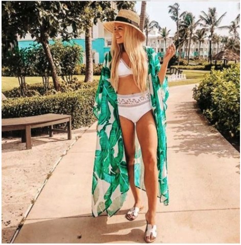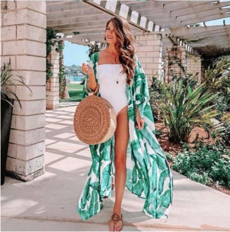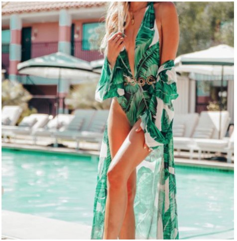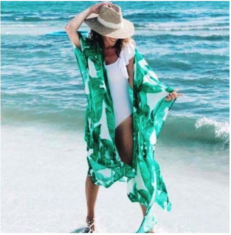 ОБЛОЖКА С ПРИНТОМ ПАРЕО ЗЕЛЕНЫЕ ЛИСТЬЯ ДЛЯ КОСТЮМА МАКСИ
