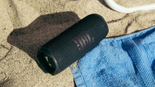 Urządzenie certyfikat IP67. Dzięki temu możesz bez obawy zabrać ze sobą JBL Flip 6 w dowolne miejsce, np. na plażę, bez obawy, że ulegnie uszkodzeniu.