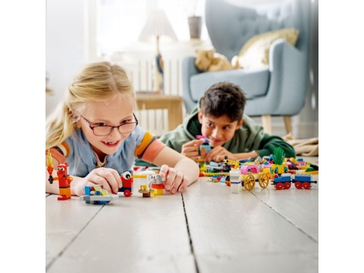 Klocki LEGO Classic 11021 - 90 lat zabawy Dzieci, dorośli i dziadkowie mogą czerpać radość podczas wielogodzinnej, nostalgicznej zabawy zestawem LEGO® Classic 90 lat zabawy (11021). Zestaw ten stanowi hołd dla kreatywnej frajdy minionych czasów — zawiera wiele różnokolorowych klocków LEGO, 15 minimodeli stanowiących repliki słynnych zestawów LEGO z poprzednich lat oraz dodatkowe klocki do swobodnego budowania.