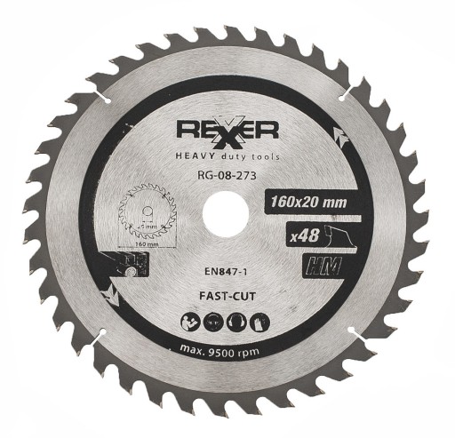 - 1 x PIŁA TARCZOWA HM DO DREWNA 160X20 MM 48 ZĘBÓW Z PŁYTKAMI WĘGLIKOWYMI