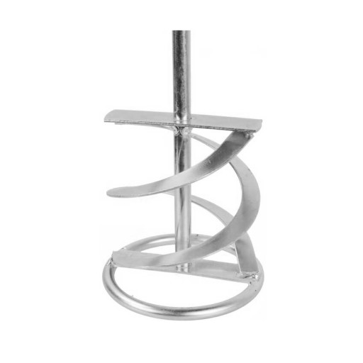 Na końcu uchwytu znajduje się część mieszająca, która ma kształt spiralny. Dzięki odpowiedniemu kształtowi i rozmiarowi mieszadła, można efektywnie i równomiernie wymieszać zaprawę, zapewniając jednolitą konsystencję i lepsze właściwości aplikacyjne.