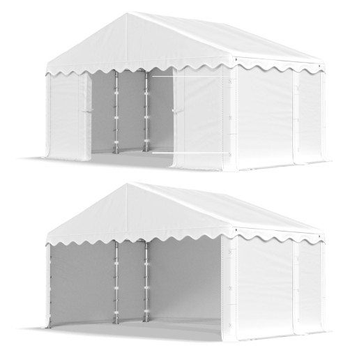 3. Otwarte główne wejścia/wjazdy oraz odpięte wszystkie ścianki z jednego boku namiotu.