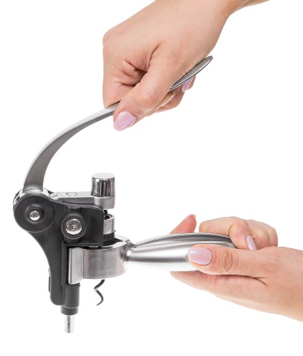 Korkociąg z dźwignią - pozwoli szybko i wygodnie otworzyć butelkę. Sposób użycia jest prosty. Naciągamy dźwignia w dół, a spirala wkręca się w korek - odciągamy dźwignię, a korek wysuwa się z szyjki butelki.