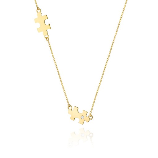 Celebrytka została wykonana z żółtego/białego złota i ozdobiona pojedynczym brylantem.