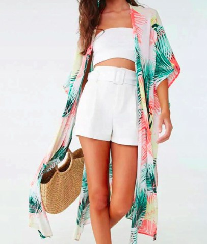 ПАРЕО-КИМОНО ПОКРЫТИЕ ЦВЕТНЫЕ ЛИСТЬЯ