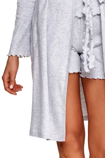 Damski szlafrok w klasycznym, jasno szarym kolorze to praktyczne rozwiązanie, które sprawdzi się w szafie każdej kobiety. Wykonany z prążkowanej bawełny, która nadaje wyjątkowego uroku.