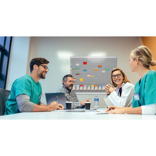 Ścienne systemy planowania T-Card oferują natychmiastowy przegląd stanu projektu.
