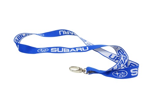 smycz do kluczy w kolorze niebieskim z wyszywanym logiem marki SUBARU oraz białymi napisami