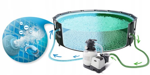 Intex wprowadza rewolucję w basenach ogrodowych - napowietrzanie wody podczas jej filtrowania, dostępna we wszystkich pompach tego producenta.