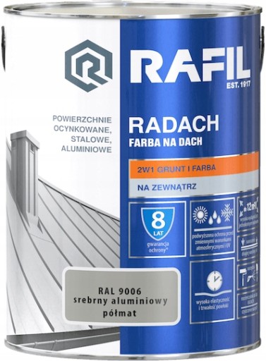 RAFIL RADACH FARBA NA DACH SREBRNY ALUMINIOWY RAL9006 PÓŁMAT 5L