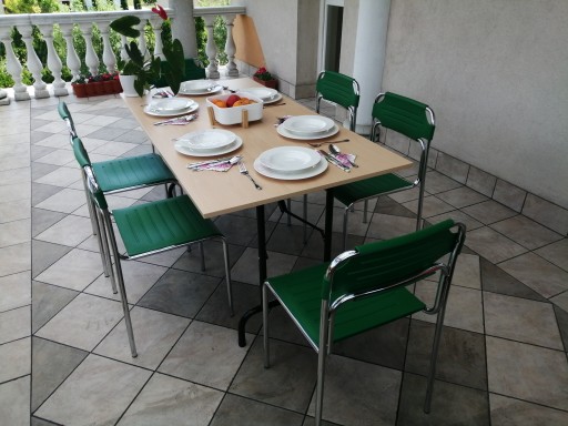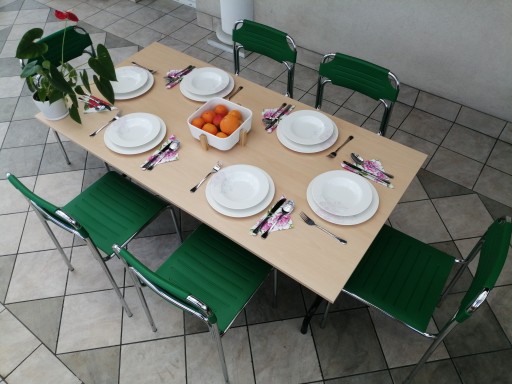 - składna metalowa podstawa - nogi stołu, dzięki temu mamy możliwość przechowywania np. w stosie na małej powierzchni