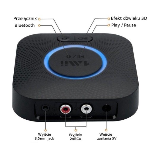 Ten odbiornik Bluetooth może jednocześnie łączyć się z dwoma urządzeniami obsługującymi technologię Bluetooth, co umożliwia odtwarzanie muzyki z telefonu lub tabletu / laptopa.