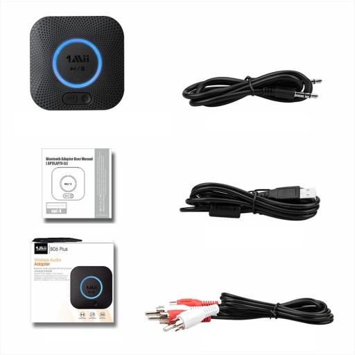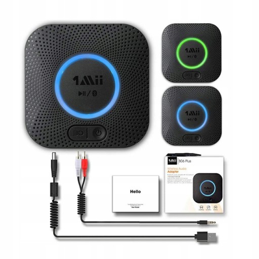 - Zestaw zawiera: odbiornik Bluetooth 1Mii B06 Mini APTX, kabel zasilający USB, kabel audio 2x RCA - jack 3,5 mm, opakowanie