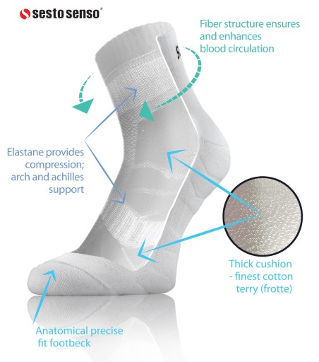 ✔ Skarpety Sesto Senso dla biegaczy to produkt wykonany z najwyższej jakości materiałów. Oddychające, bezszwowe, doskonałe na każdą pogodę i do uprawiania wielu rodzajów aktywności. Są to skarpety kompresyjne. Skarpety szczególnie polecamy osobom uprawiającym bieganie.