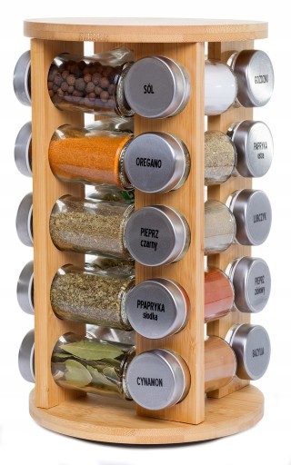 Przyprawnik Organizer Drewniany Obrotowy na Przyprawy 20 sztuk
