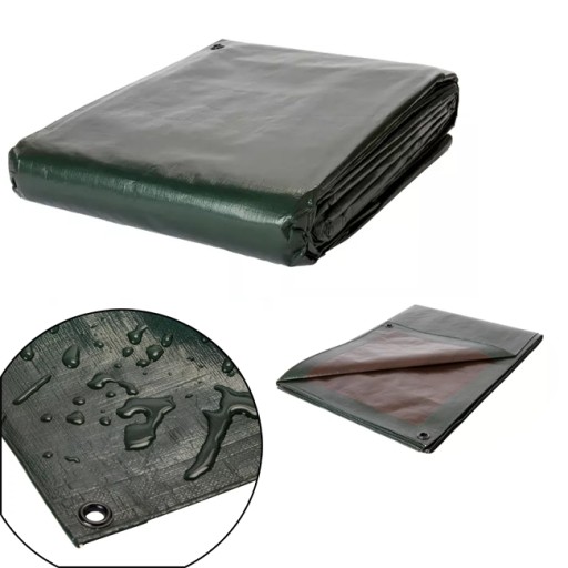 Gruba, brązowo-zielona plandeka okryciowa 6x10m 140g model 2022 rok