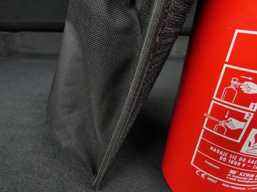Przed zakupem prosimy upewnić się czy rzep trzyma się tapicerki w Państwa bagażniku. Jeśli rzep z np. kurtki czy torby przyczepia się do wykładziny - pokrowiec gaśnicy zachowa się tak samo.