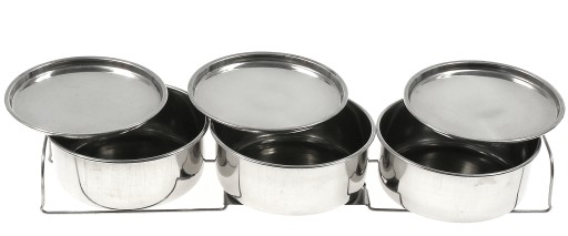 3 x pojemnik stalowy z przykrywką (średnica 11cm, wysokość 4,5 cm, 300ml każy)