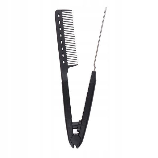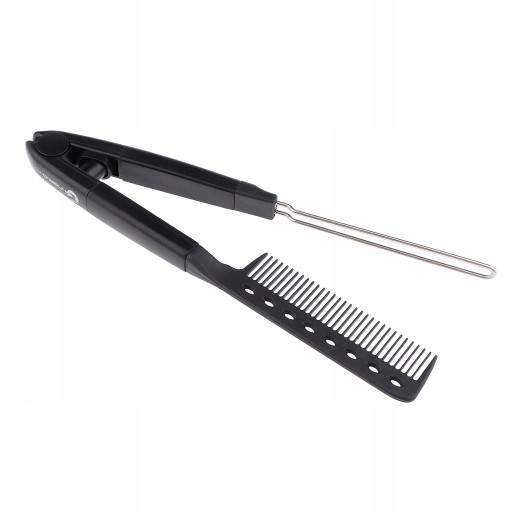 Prostownica do włosów w kształcie litery V z metalowym klipsem w kształcie koła