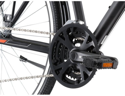 Rower wyposażony jest także w wygodną stopkę, która umożliwia postawienie roweru nawet wtedy, gdy nie ma możliwości by oprzeć go o ścianę. Dołączone błotniki zabezpieczą odzież przed zachlapaniem wodą unoszącą spod kół, a bagażnik rowerowy pozwoli na przewiezienie dodatkowego bagażu lub montaż toreb i sakw rowerowych.