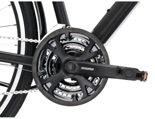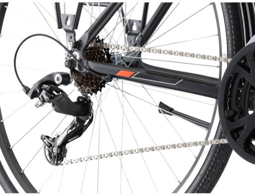 KROSS GO Explorer 1.0 został stworzony z użyciem komponentów gwarantujących prostą obsługę oraz łatwy serwis - nawet podczas wycieczki rowerowej. Został wyposażony w przerzutki Sunrace. Takie połączenie pozwoliło na otrzymanie biegów, które skutecznie pomogą w pokonaniu każdego wzniesienia nawet z bardzo obciążonym rowerem oraz rozpędzenie się podczas jazdy po płaskim terenie. Dla bezpiecznego hamowania rower został wyposażony w klasyczne hamulce typu V, które oferują wysoką moc hamowania oraz zapewniają łatwy serwis.