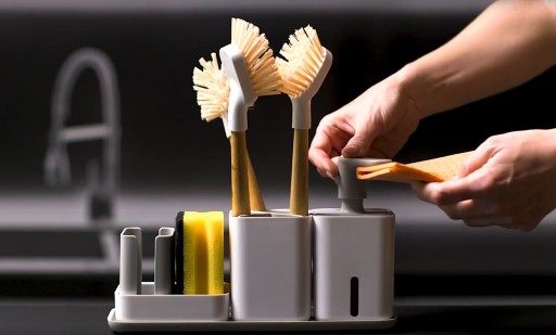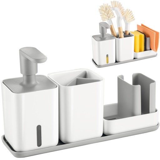 ✅ Łatwe napełnianie oraz dawkowanie płynu do mycia naczyń, wyjmowane wkładki w pojemniku przyśpieszają schnięcie i ułatwiają czyszczenie.