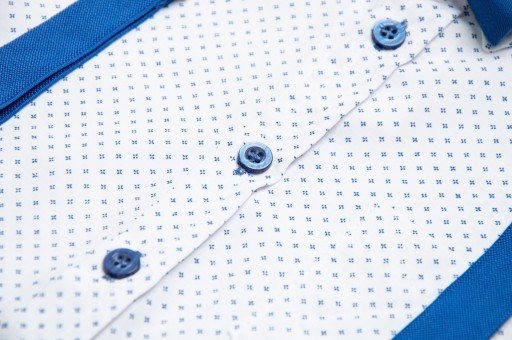 - koszula ma biały kolor w drobny motyw w kolorze niebieskim (80% bawełna, 20% poliester)