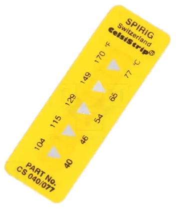 Czarna powierzchnia na znaczniku jest w 100% nieodwracalnym dowodem że powłoka przekroczyła czasami określoną temperaturę topnienia. Zaczernienie pierwotnego poziomu bieli jest nieodwracalne, próba usunięcia powoduje zniszczelnie znacznika.