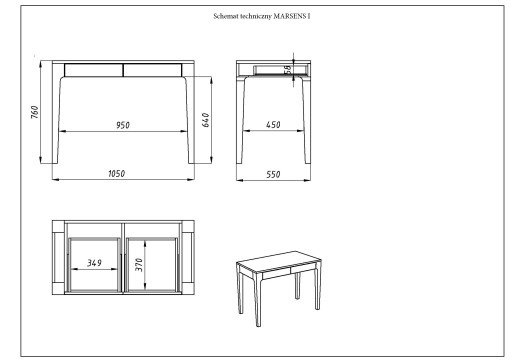 Biurko MARSENS I w konfiguracji z 2 szufladami