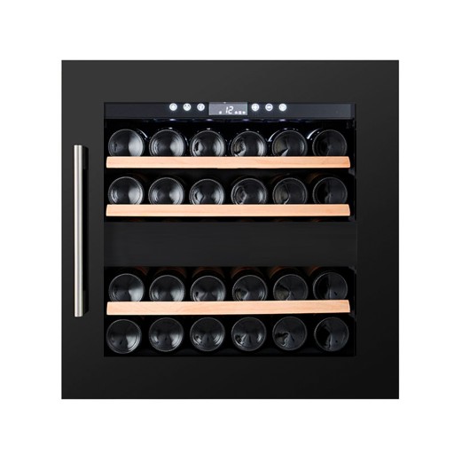 Stylowy design z frontem z czarnego szkła, wysuwanymi półkami z drewna bukowego i białym oświetleniem wewnętrznym LED. Dzięki panelowi dotykowemu i wyświetlaczowi cyfrowemu masz pełną kontrolę nad temperaturą i oświetleniem.