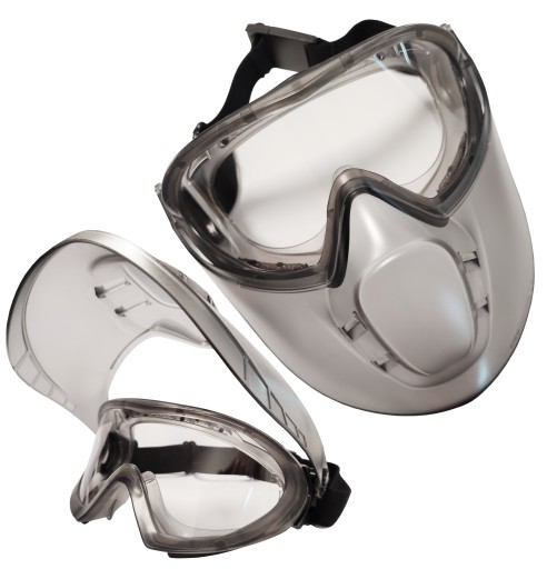 ✅ ZESTAW 2w1 zapewnia ochronę wszędzie tam, gdzie oczy/ twarz są narażone na kontakt z pyłem, kurzem, odpryskami chemicznymi, ciałami stałymi i cieczami.