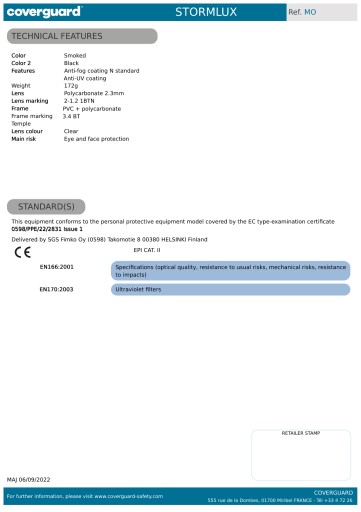 - EN 170 (ochrona indywidualna oczu- filtry chroniące przed nadfioletem)