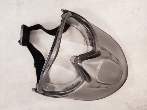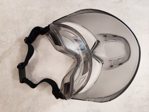 ✅ KONSTRUKCJA: gogle z uchylną przezroczystą osłoną twarzy, szeroki regulowany pałąk, 3 pośrednie kanały wentylacyjne, mocowanie za pomocą elastycznego paska z regulacją
