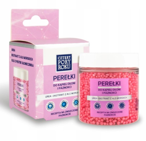 Kąpiel dłoni to idealne przygotowanie skóry rąk i paznokci przed peelingiem oraz zabiegiem manicure. Uwalniane podczas relaksującej kąpieli, zamknięte w perełkach składniki aktywne, skutecznie zmiękczają i wygładzają dłonie oraz skórki wokół paznokci. Delikatna formuła pielęgnacyjna zawiera w składzie urea, dzięki czemu pomaga chronić skórę przed wysuszeniem i sprawia, że staje się ona miękka i aksamitna. Naturalny olej z pestek słonecznika oraz ekstrakt z alg morskich w połączeniu z kojącym działaniem ciepłej wody, regenerują i odżywiają skórę. Harmonia zmysłowego zapachu, perłowego koloru i delikatnej pielęgnacji, pozostawia wyjątkowe uczucie relaksu dla dłoni.
