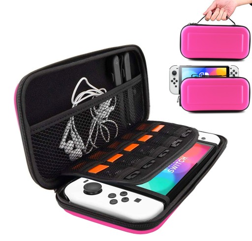 Etui jest idealnie dopasowane do Twojej konsoli Nintendo Switch i Nintendo Switch OLED - idealnie ją zabezpiecza. Wewnątrz posiada specjalne przegródki mieszczące aż 10 kartridżów z grami. W górnej części futerału znajduje się specjalne miejsce na przechowywanie akcesoriów do konsoli takich jak ładowarka, powerbank, słuchawki, pudełka z gier, itd. Pokrowiec posiada także praktyczną smycz do przenoszenia.